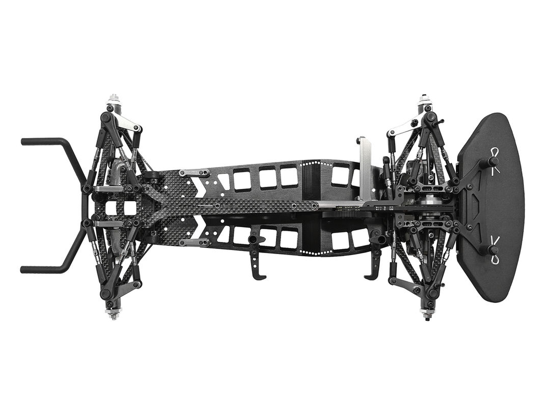 The standout feature of the A800FXR kit is its innovative two-piece, bi-material chassis plate. The forward section, made of aluminum, supports the front end, transmission, and electronics, while a carbon fiber rear section holds the rear assembly. While offering improved weight distribution and refined flex characteristics it brings unparalleled tunability as it allows four different wheelbase settings, truly redefining the phrase “the best of both worlds”!